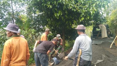 MEDIAINDO.id-|Semangat gotong royong kembali menggema, Babinsa Desa Bojongkapol kecamatan Bojong Gambir Koramil 1221/Taraju Kodim 0612/Tasikmalaya Serka Otang Solehudin bersama masyarakat bahu-membahu membangun akses jalan desa di kampung Cilalay kedusunan Cicomre Sepanjang 300m dan lebar 2m yang menjadi kebutuhan vital bagi warga di Desa Bojongkapol, Kecamatan Bojonggambir Kabupaten Tasikmalaya Selasa (24/12/2024).