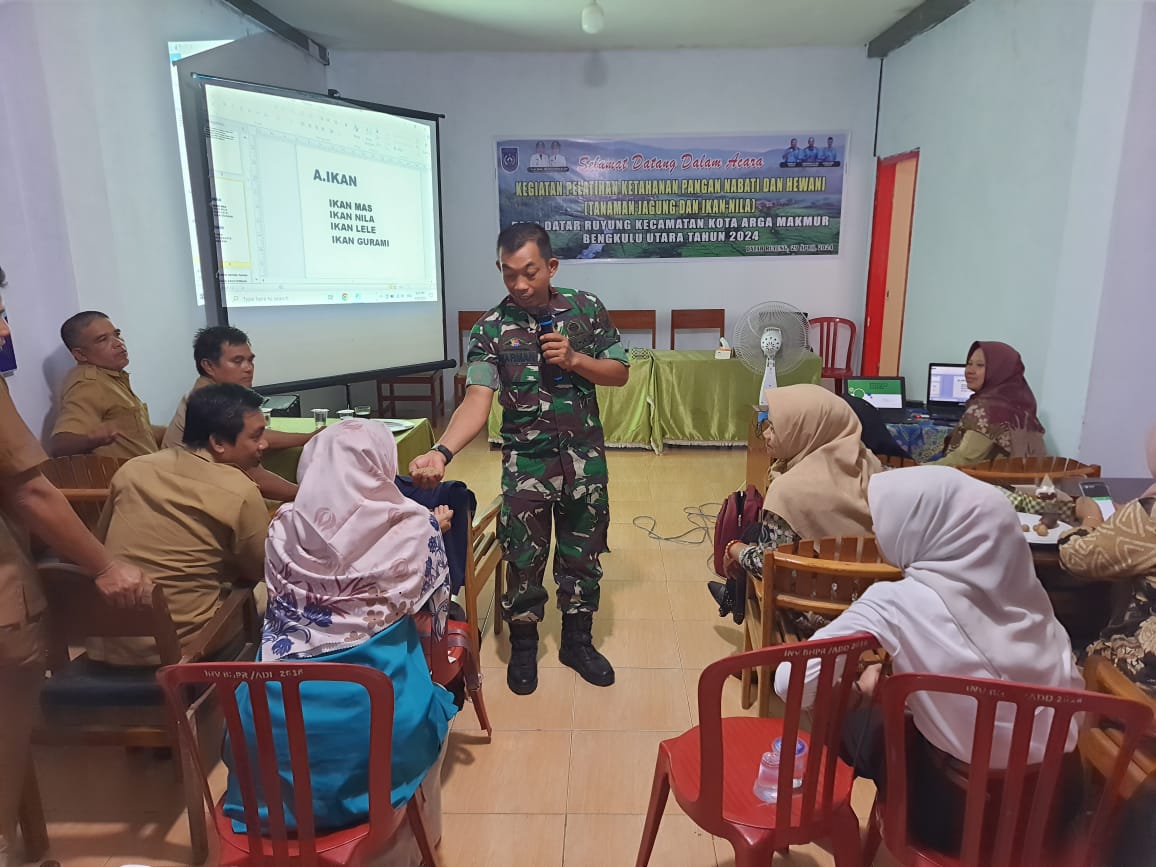 MEDIAINDO.ID – Bengkulu Utara – Kegiatan Pelatihan Ketahanan Pangan Nabati dan Hewani (Tanam Jagung dan Ikan Nila) Peltu Siswoyo dan Serda Yarmansyah menjadi nara sumber dan mensosialisasikan inovasi pembuatan Pakan Ikan Mandiri di Desa Datar Ruyung Kecamatan Arga Makmur Kabupaten Bengkulu Utara, Senin 29 April 2024.