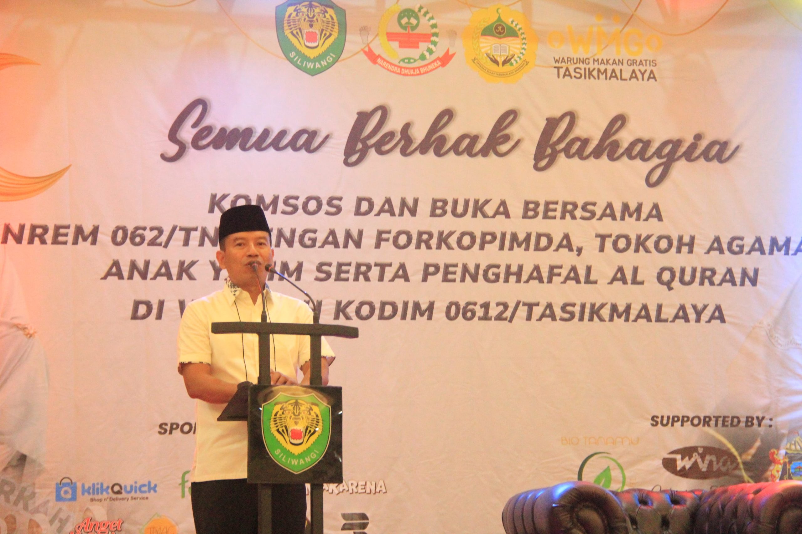 Danrem 062/TN Kolonel Inf Nurul Yakin, M.A. Bersama Dandim 0612/Tasikmalaya Letkol Arm Yan Octa Rombenanta, S.Sos. Gelar Buka Puasa Bersama dan Santunan Anak Yatim di Wilayah Kodim 0612/Tasikmalaya
