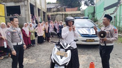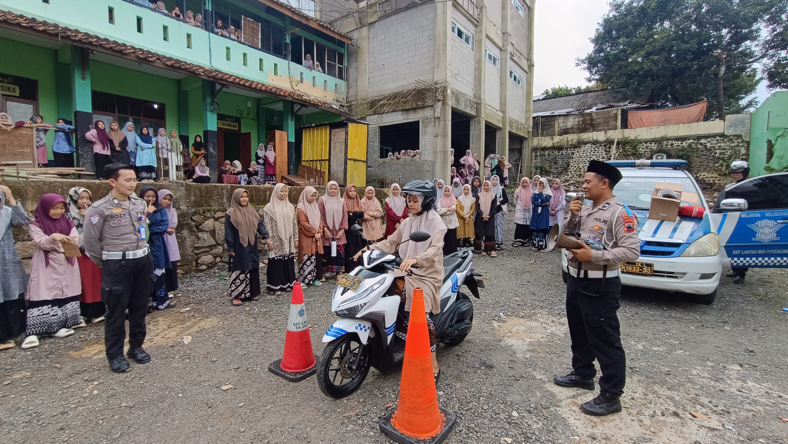 Petugas dari Satuan Lalu Lintas Polres Purbalingga memberikan materi tentang pentingnya mematuhi aturan lalu lintas, mengenali rambu-rambu jalan, serta bahaya berkendara tanpa perlengkapan keselamatan.