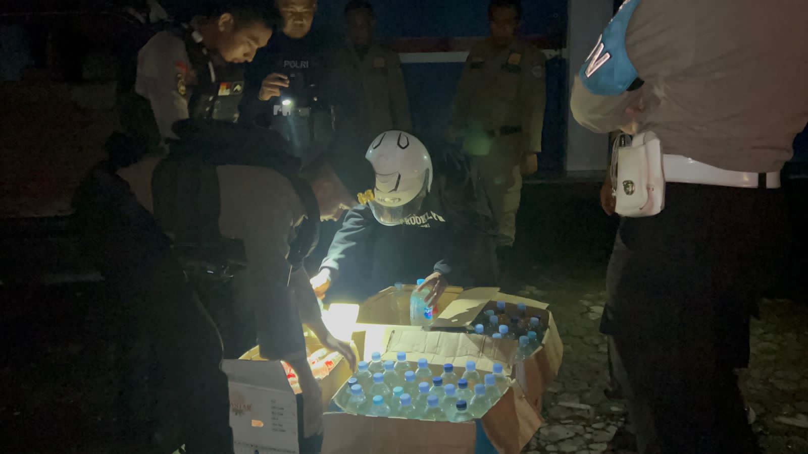 Pada saat itu, tim Patroli meringkus seorang pria penjual miras yang juga pemilik warung angkringan yakni lelaki paruh baya, didapati puluhan botol miras lokal jenis ciu.