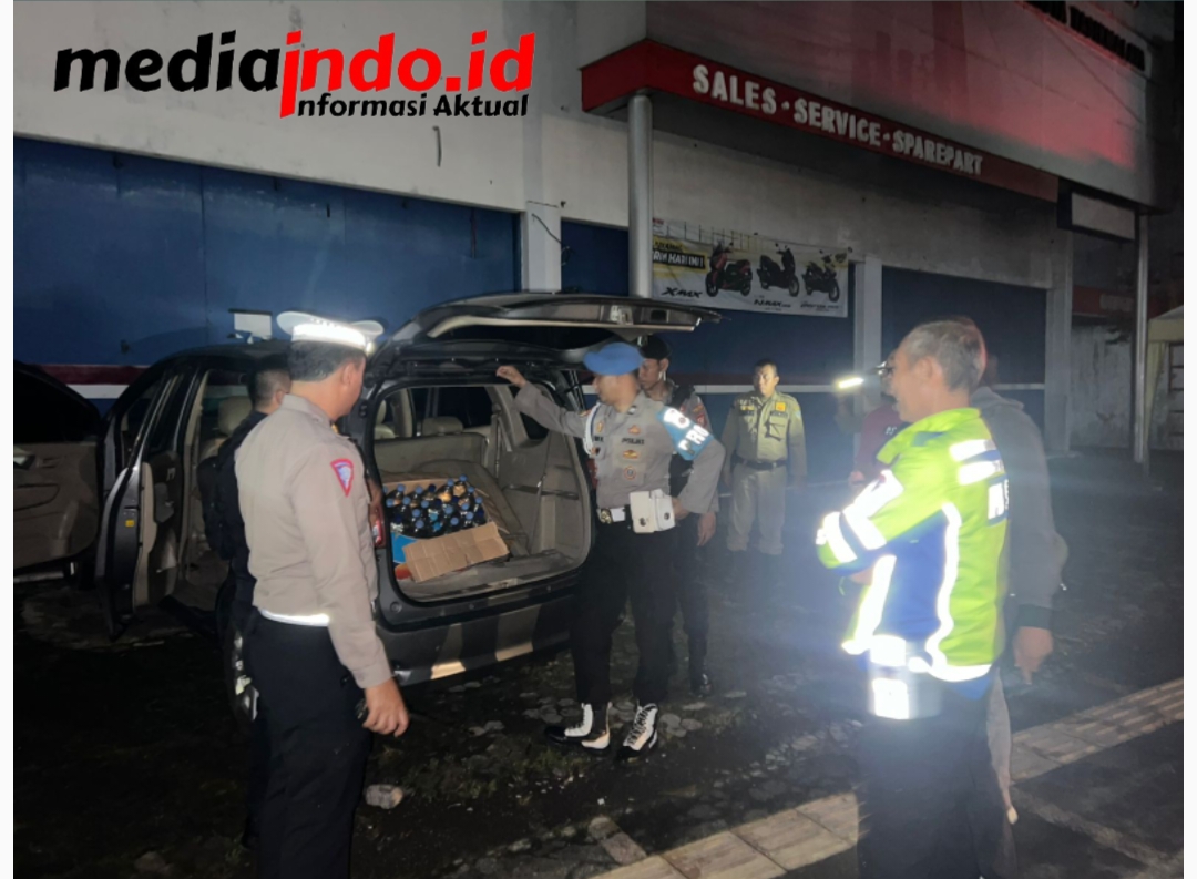 Petugas berhasil mengamankan puluhan botol miras yang tersimpan di mobil yang diparkirkan di pinggir jalan bersebelahan dengan warung angkringan tersebut.