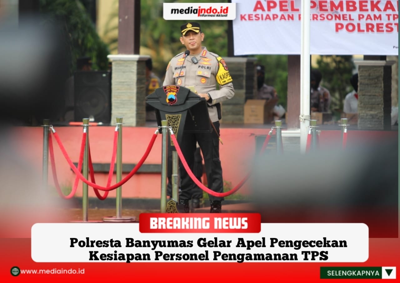 MEDIAINDO.ID – Polresta Banyumas Polda Jateng menggelar Apel Pembekalan dan Pengecekan Kesiapan Personel Pengamanan Tempat Pemungutan Suara (TPS) dalam Operasi Mantap Brata Candi 2024 Polresta Banyumas, Kamis (8/2/24).
