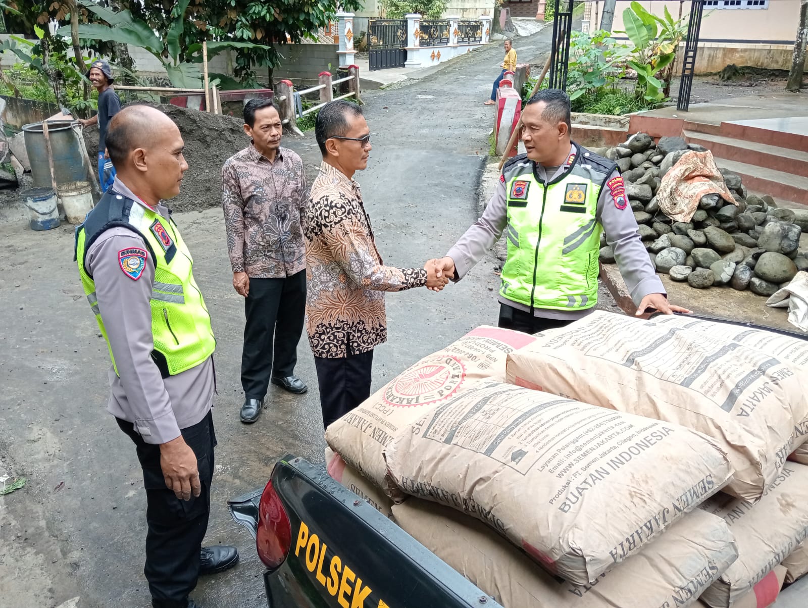 Purbalingga,Jateng ,mediaindo.id Polsek Bobotsari menyalurkan bantuan berupa 13 sak semen untuk pembangunan jalan menuju area pemakaman di Desa Palumbungan, Kecamatan Bobotsari, Kabupaten Purbalingga, Kamis (27/11/2025).