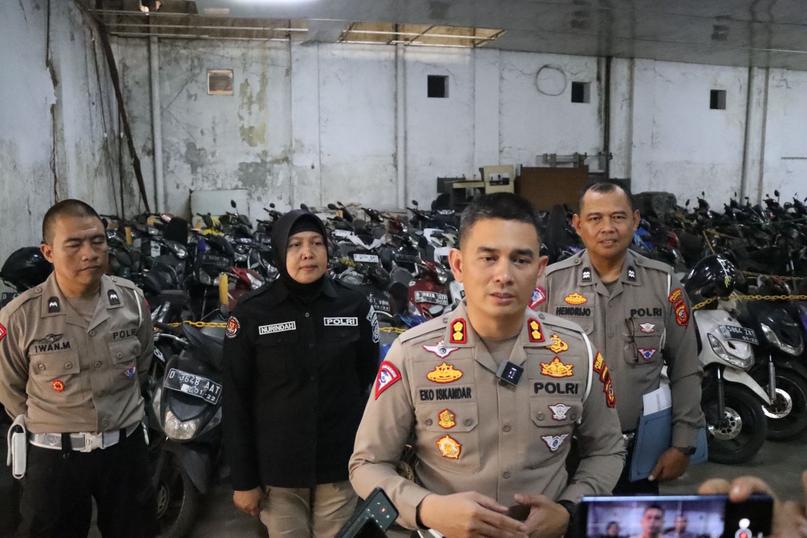 “Bisa hubungi nomor WA Kang Busar 082130201996, sebelum datang ke Polrestabes bisa konfirmasi dulu. Nanti kita cek data nanti silahkan siapkan dokumen asli BPKB dan STNK,” kata kasat lantas