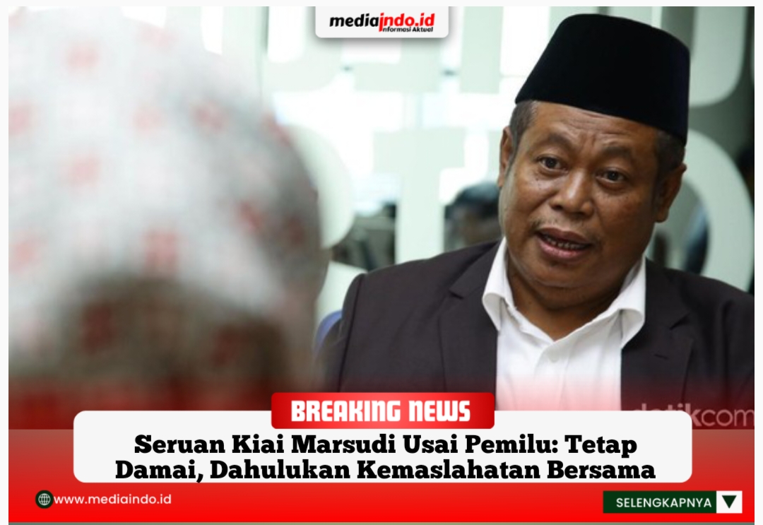 MEDIAINDO.ID Jakarta, Wakil Ketua Umum Majelis Ulama Indonesia (MUI) Kiai Marsudi Suhud mengajak semua pihak untuk melakukan hal positif selama menunggu hasil real count Pemilu 2024. Marsudi menyeru semua elemen bangsa untuk mengedepankan kemaslahatan bersama.