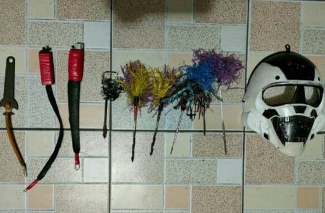 Tim langsung melakukan pemeriksaan badan dan di seputaran tempat mereka nongkrong dan akhirnya berhasil mendapati senjata tajam jenis panah wayer yang disembunyikan di selokan dan di dekat tempat sampah.
